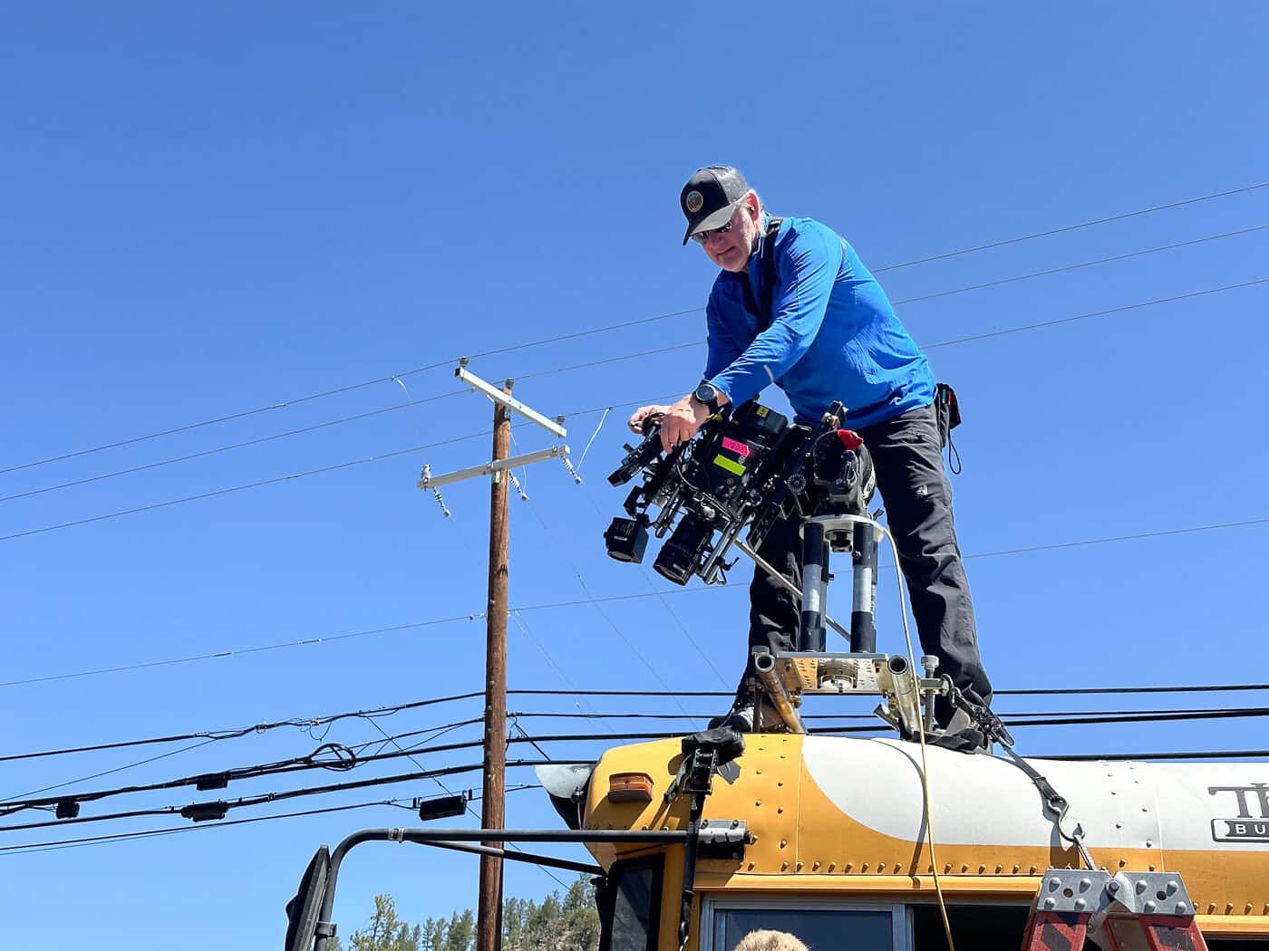 Above Photo: Filming a scene for THE LOST BUS. Photo by Melinda Sue Gordon